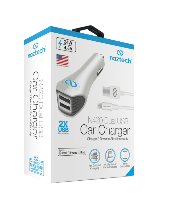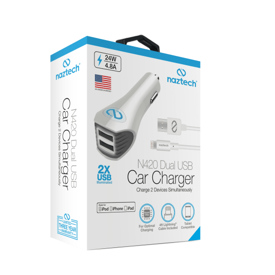 Ładowarka Naztech N420 Dual USB MFI z kablem lightning